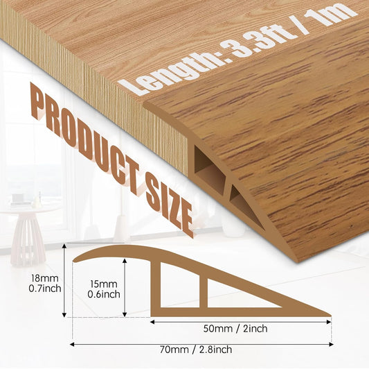 Floor Transition Strip Vinyl Door Threshold Ramp Self Adhesive Carpet Edging Strip Doorway Edge Trim, Overlap Edge Reducer for Laminate Carpet, Floor, Tile (Orange Oak, 3/5" to 4/5", 3.3Ft)