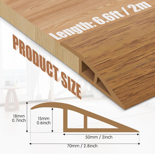 Floor Transition Strip Vinyl Door Threshold Ramp Self Adhesive Carpet Edging Strip Doorway Edge Trim, Overlap Edge Reducer for Laminate Carpet, Floor, Tile (Orange Oak, 1/5" to 2/5", 6.6Ft)