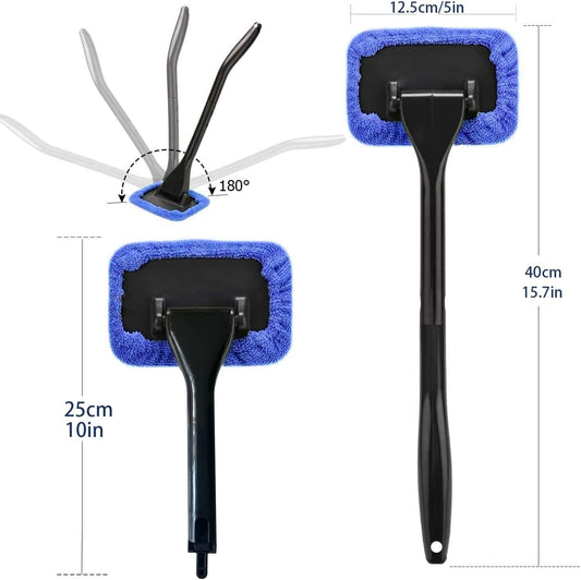 Windshield Cleaning Tool Windshield Cleaning Wand Auto Window Cleaner,5 Pieces Reusable Cloth Pads for Car Interior, Dirty Car Washing Brushes (Blue)