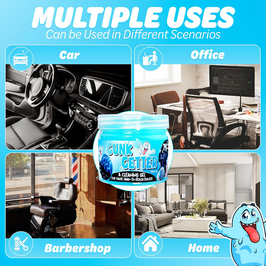 Gunk Getter 12 Pack Cleaning Gel for Those Hard to Reach Places, Automotive Cup Holder Electronic Keyboard Office, Slime Gel Cleaner Dust Crumb Removal (Jar, Blue, 3.5oz)