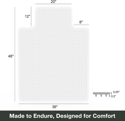 Kuyal Office Chair Mat for Carpet, 36x48 Clear Heavy Duty Computer Chair Mat with Lip, Under Desk Protector Carpeted Floors Mat, Easy Chair Movement,Ship Flat