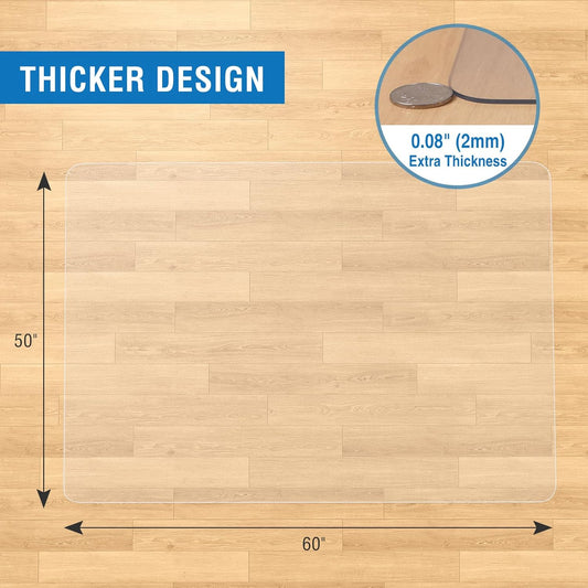 Clear Chair Mat, 60" x 50" Office Chair Mat for Hard Floors, Desk Floor Mat for Gaming, Vinyl Floor Mat for Home Office Kichen Living Room, Clear