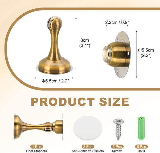 Door Stopper 1 Pack Magnetic Door Stops, Zinc Alloy Antique Brass Door Catch Door Holder Wall Floor Mounted, Metal Soft-Catch