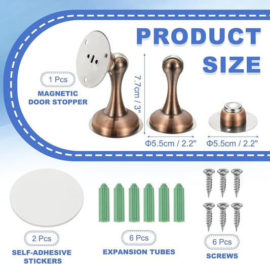 uxcell Magnetic Door Stopper, Stainless Steel Heavy Duty Door Holder, No Drilling Doors Knob Wall Protector with Self-AdhesiveTapes and Screws for Home Wall Floor Mounting, Red Bronze