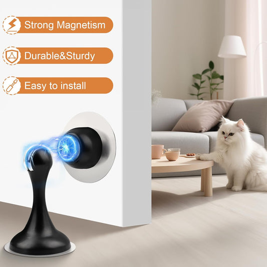 Magnetic Door Stop, Stainless Steel, Magnetic Door Catch, Door Holder, Door Stops, Wall Mounted, Floor Mounted, Door Banging Prevention (Large x 2pack, Black)