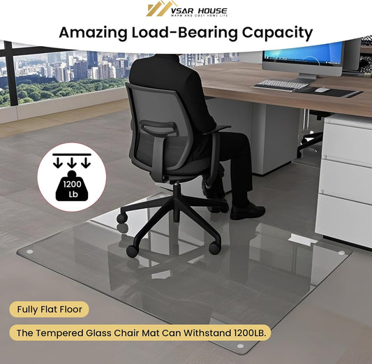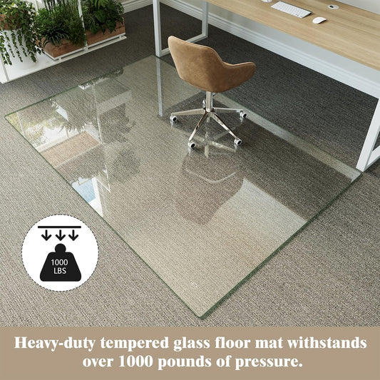 47" x 47" Tempered Glass -Glass Chair Mat, Heavy Duty Hard Floor Mat with Round Corner and Polished Edge, Office Chair Mat for Carpet Office Home Hardwood Floor Desk