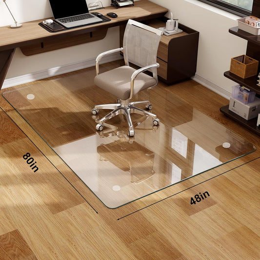 48" x 80" Tempered Glass -Glass Chair Mat, Heavy Duty Hard Floor Mat with Round Corner and Polished Edge, Office Chair Mat for Carpet Office Home Hardwood Floor Desk