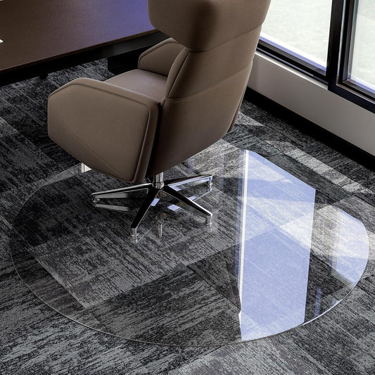55" x 55" Round Tempered Glass Chair Mat for Carpet & Hardwood, Heavy-Duty Glass Floor Mat for Office Chair, Durable Glass Desk Mat for Home and Office