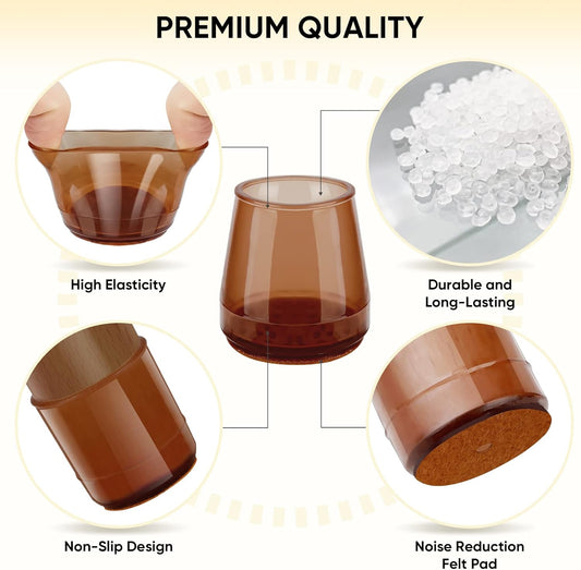 CHUNZEXI 32 Pack Chair Leg Floor Protectors for Hardwood Floors, Silicone Felt Covers Pads Caps, Protect Wood Furniture Feet Floors Noise Reduce and Scratch (Universal Large & Brown)