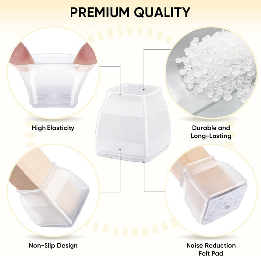 BALEINE 16 Pack Silicone Chair Leg Floor Protectors, Stool Leg Protectors Cap, Non-Slip Chair Leg Caps for Hardwood Floors (Clear & Small (Square), 16 Pack)