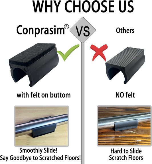 Rectangle U Shaped Chair Leg Tips Caps with Felt Pads,Furniture Feet Protector Slide Smoothly Glides No Scratches No Noise Protect Hardwood Floor,Fit 25mm(1inch) Diameter Tubular Leg (Black 8PCS)