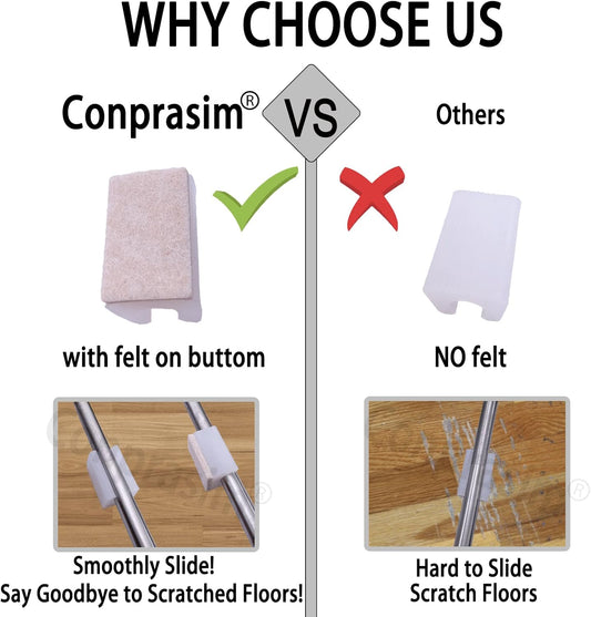 Rectangle U Shaped Chair Leg Tips Caps with Felt Pads,Furniture Feet Protector Slide Smoothly Glides No Scratches No Noise Protect Hardwood Floor,Fit 10mm(25/64inch) Diameter Tubular Leg (White 8PCS)