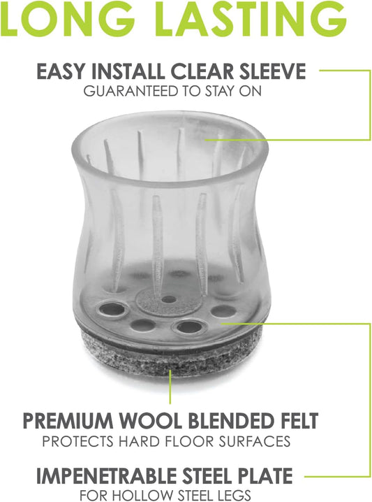 Slipstick GorillaFelt Chair Leg Floor Protectors for Hardwood Floors, Clear Sleeve Felt Pads for Furniture That Stay On, Fits Round & Square Legs, Includes 8 Premium Transparent Chair Socks, CB184