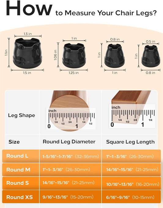 24-Pack Silicone Chair Leg Floor Protectors for Hardwood Floors -Felt Furniture Pads, Rubber Chair Leg Covers/Caps - No Noise & Scratch-Proof - Round Large (Fits 1 5/16"-1 7/16" / 32-36mm), Black