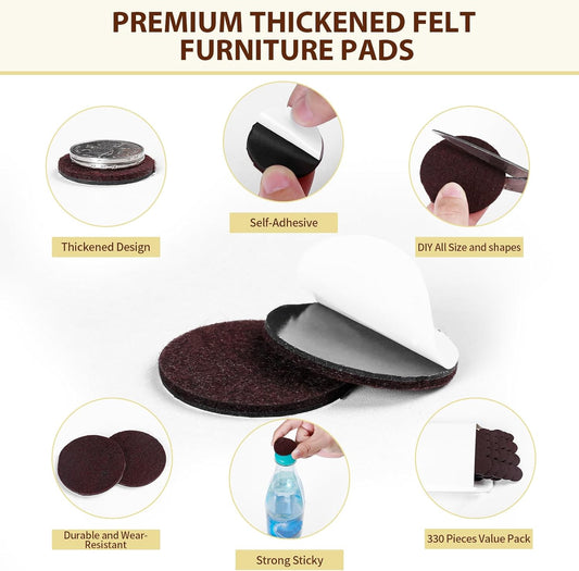 Ezprotekt 330 Pcs Felt Furniture Pads for Hardwoods Floors, Self Adhesive Cuttable Chair Felt Pads, Anti-Scratch Furniture Feet Floor Protectors Pads for Desk Sofa Bed Table Cabinet (Brown)