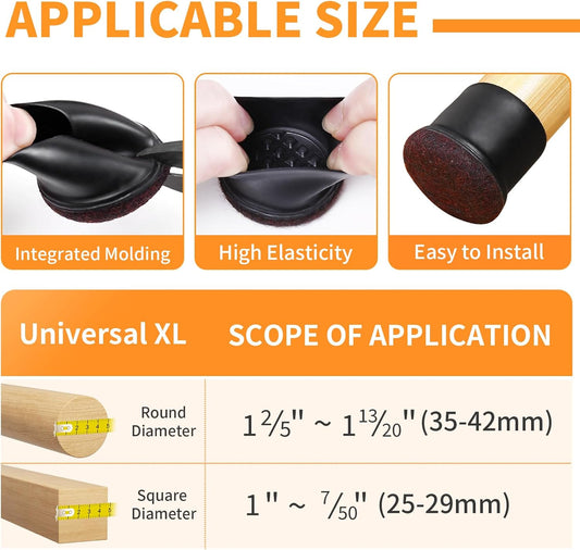 Ezprotekt 8 Pcs Extra Large Chair Leg Protectors with Felt, Silicone Felt Furniture Pads, Floor Protectors for Chair, Bar Stools Leg Protectors Caps, Table Leg Cups Covers (XL Fit: 1.4"-1.65", Black)