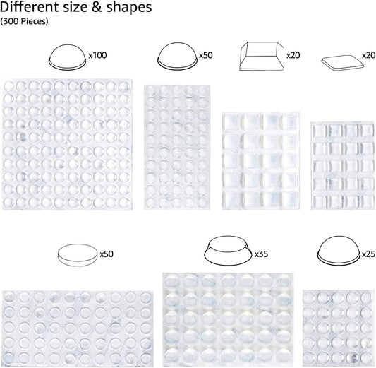 Amazon Basics Cabinet Door Bumper, Clear Self Adhesive Bumpers Pads for Surface Protection and Noise Reduction, 300-Piece, 6.9 x 4.5 x 0.6 inch