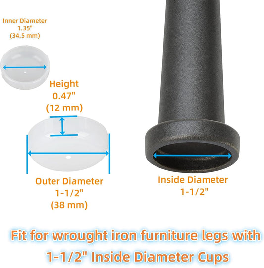 Wrought Iron Patio Furniture Feet Caps - Furnigear 1-1/2" Round Plastic Outdoor Chair Leg Caps, Floor Protectors for Metal Chairs & Tables, Patio Furniture Replacement Rubber Feet (White, 24 Pack)
