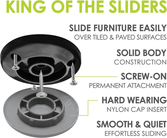 Gorilla Outdoor 2 Inch Furniture Sliders/Screw on Nylon Glide Floor Protectors (Set of 4 Glides) for Carpet and Hard Surface Sliding on Outdoor & Indoor Floors