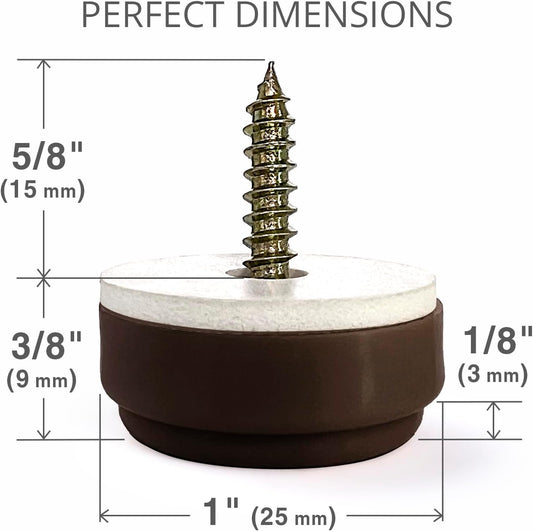 Screw-On Felt Furniture Pads X-Protector 24 PCS - 1.1” Chair Leg Floor Protectors for Hardwood Floors - Premium Chair Glides - Brown Floor Protectors for Chairs - The Best Furniture Sliders!