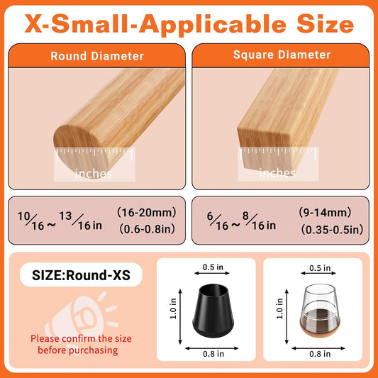 Chair Leg Floor Protectors Extra Small 24 Pcs,Silicone Chair Leg Protectors for Hardwood Floors/Tiles,360°Wrapped Felt Bottom to Prevent Scratch and Reduce Noise, Round Black