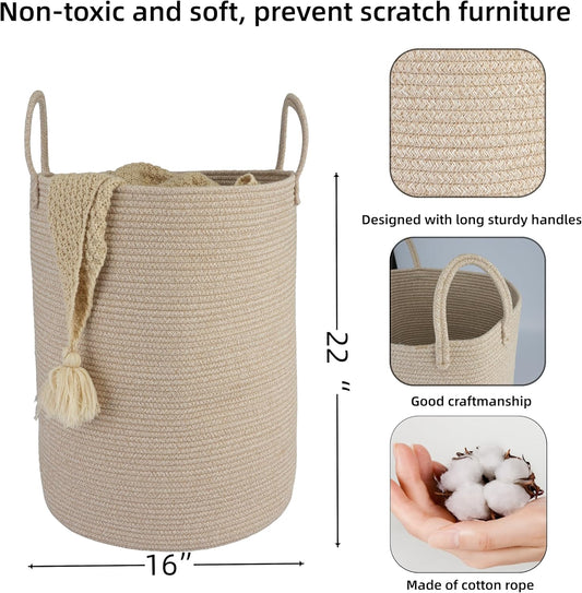 Cotton Rope Laundry Basket Hamper for Clothes Woven Storage Basket for Living Room Bedroom Boho Tall Rope Baskets for Blanket Toys Pillow Towels Baby Nursery Hamper Bin Large oatmeal
