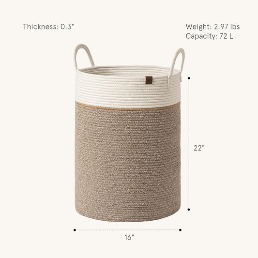 Cotton Rope Laundry Basket Hamper for Clothes Woven Storage Basket for Living Room Bedroom Boho Tall Rope Baskets for Blanket Toys Pillow Towels Baby Nursery Hamper Bin Large brown and white