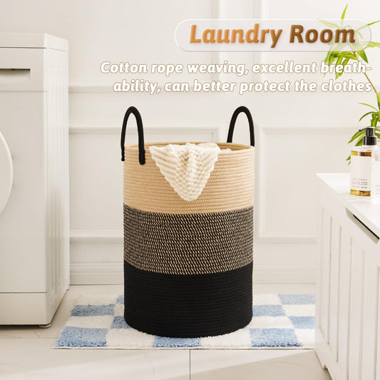 Laundry Basket,Woven Cotton Rope Laundry Hamper,100L for Decorative Storage of Dirty Clothes,Toys and Blankets in Bathroom,Bedroom and Living Room