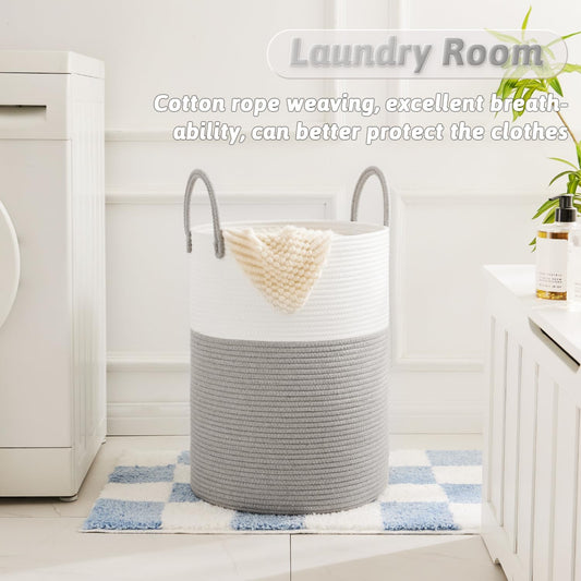 Laundry Basket,Woven Cotton Rope Laundry Hamper,60L for Decorative Storage of Dirty Clothes,Toys and Blankets in Bathroom,Bedroom and Living Room