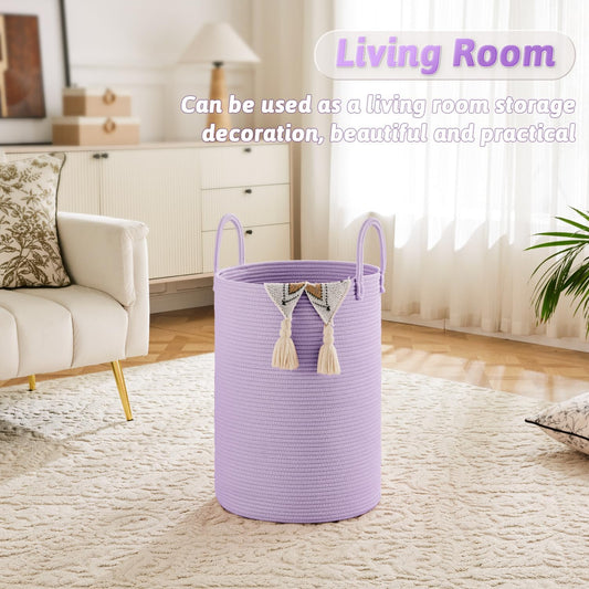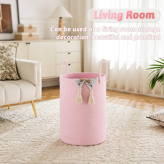Laundry Basket,Woven Cotton Rope Laundry Hamper,60L for Decor Storage of Dirty Clothes,Toys and Blankets in Bathroom,Baby Room and Living Room