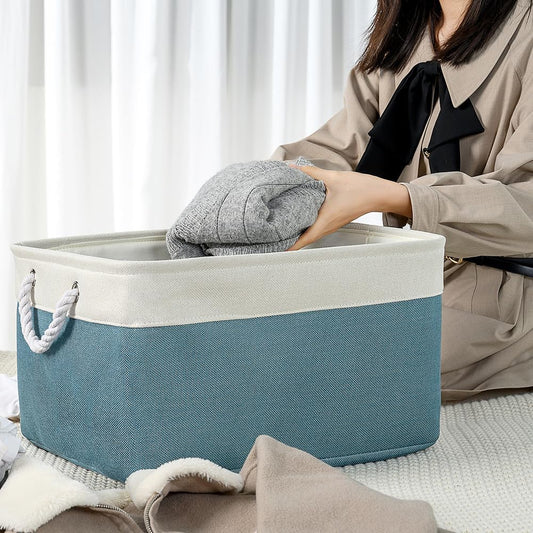 OIAHOMY Storage Basket, Woven Baskets for Storage, Cotton Rope Basket for toys,Towel Baskets for Bathroom - Pack of 3,White Blue