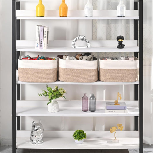 Storage Baskets for Organizing, Woven Cotton Rope Basket for Storage Books, Baby Organizing Baskets, Toy Storage Basket, 15"x11"x9.5", 3 Packs, Off White & Brown