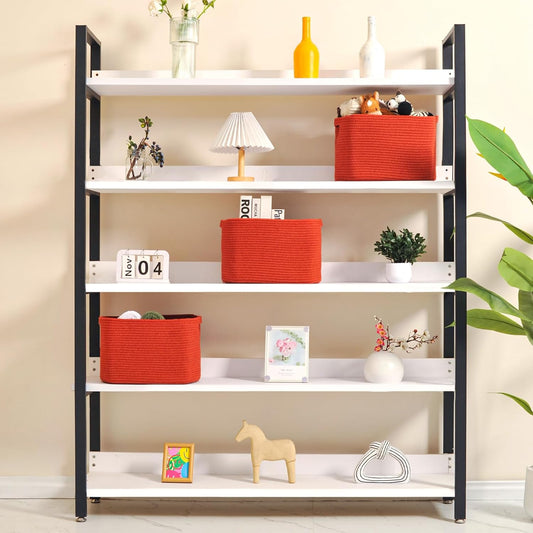 Storage Baskets for Organizing, Storage Basket for Shelves, Toy Towel Basket for Bathroom Nursery, Woven Cotton Rope Baskets for Decor, 15"x11"x9.5", 3 Packs, Brick Red