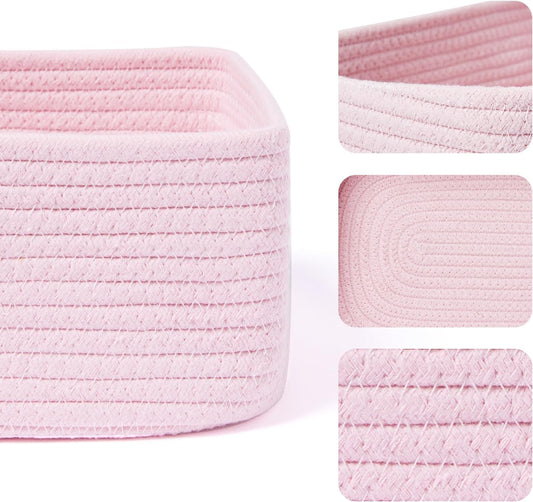 Small Storage Baskets for Organizing | Closet Organizer Bins | Shelf Toy Basket | Woven Rope Baskets | Cube Decorative Box | Shallow Basket | 11.5x7.5x4.7” | 3 Packs Pink