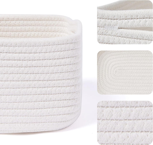 Small Storage Baskets for Organizing | Closet Organizer Bins | Shelf Toy Basket | Woven Rope Baskets | Cube Decorative Box | Shallow Basket | 11.5x7.5x4.7” | 3 Packs White Brown