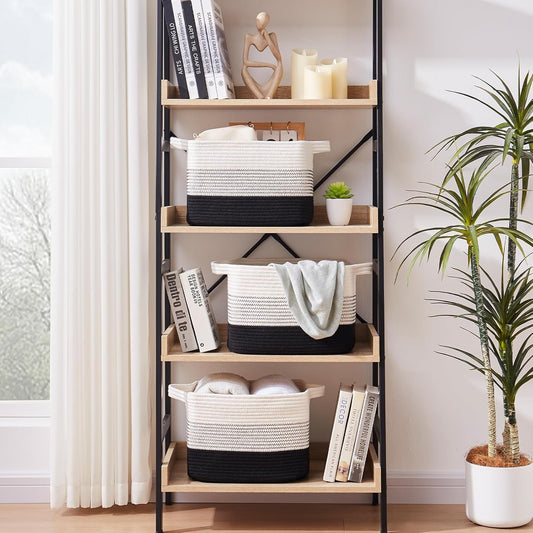 OIAHOMY Storage Basket, Woven Baskets for Storage, Cotton Rope Basket for toys,Towel Baskets for Bathroom - Pack of 3, Black & Brown