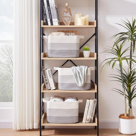 Small Storage Baskets for Organizing | Closet Organizer Bins | Shelf Toy Basket | Woven Rope Baskets | Cube Decorative Box | Shallow Basket | 13x8.5x5.1” | 4 Packs Gradient Brown