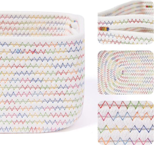 Small Storage Baskets for Organizing | Closet Organizer Bins | Shelf Toy Basket | Woven Rope Baskets | Cube Decorative Box | Shallow Basket | 11.5x7.5x4.7” | 4 Packs Rainbow