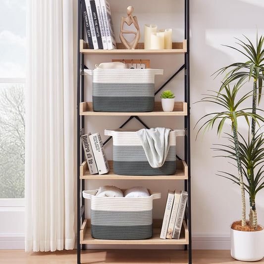 OIAHOMY Storage Basket, Woven Baskets for Storage, Cotton Rope Basket for toys,Towel Baskets for Bathroom - Pack of 3, Gradient Gray
