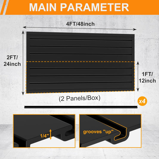 NeatiEase Slatwall Panel Wall Storage Systems, 4 x 4ft Slat Wall Paneling Garage Wall Organizer, Heavy Duty Wall Mounted PVC Wall Rack (Black)