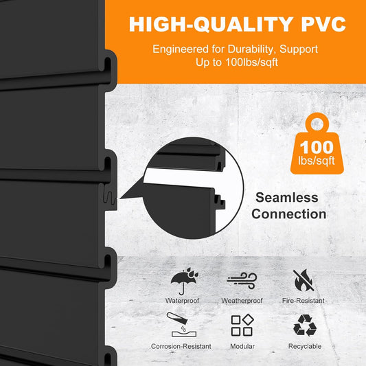 DoCred Slatwall Paneling Organizer, 4x7.5 FT PVC Garage Slat Wall Storage Systems, Heavy Duty Mounted Slat Peg Board for Tool Organization Ladder Bike Rack (Black)