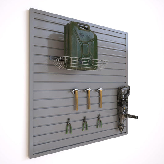 NeatiEase Slatwall Panel Wall Storage Systems, 4 x 4ft Slat Wall Paneling Garage Wall Organizer, Heavy Duty Wall Mounted PVC Wall Rack (Gray)