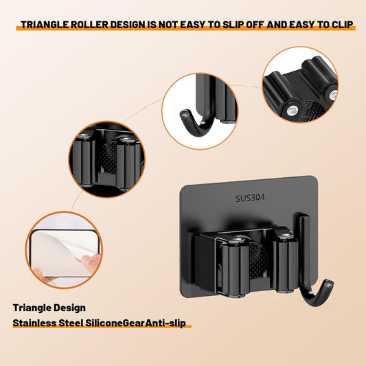 3pack Broom and Mop Holder Wall Mount No Drill Mop and Broom Gripper Mop Handle Hanger Household Cleaning Organizer, Holds up to 6 lb