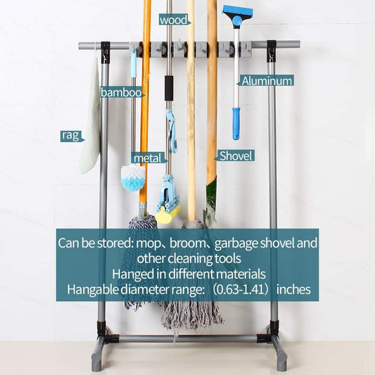 Broom And Mop Holder Put Wet Movable Floor-Mounted Mop Rack Floor Standing Cleaning Tool Cart Storage For Garden Garage Schools, Hospitals, Factories, Hotels,Property Companies