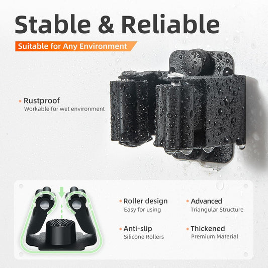 4pack Broom Holder Wall Mount Mop Holder Broom and Mop Gripper Self Adhesive No Drilling Anti-Slip Mop Handle Hanger Household Cleaning Organizer, Holds up to 6 lb