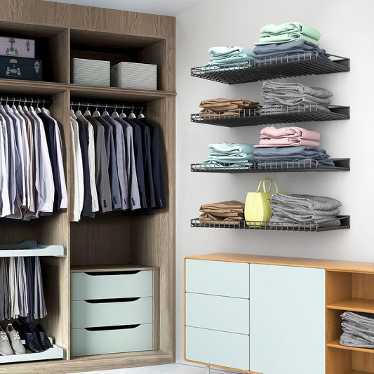 4Pack 2x3ft Adjustable Metal Garage Wall Shelving Heavy Duty Garage Storage Shelf Wall Mounted Black
