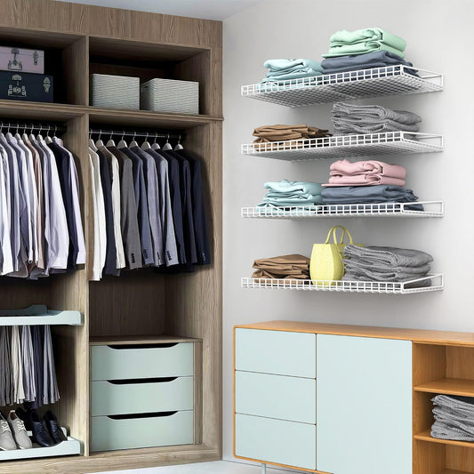 4Pack 2x3ft Adjustable Metal Garage Wall Shelving Heavy Duty Garage Storage Shelf Wall Mounted White