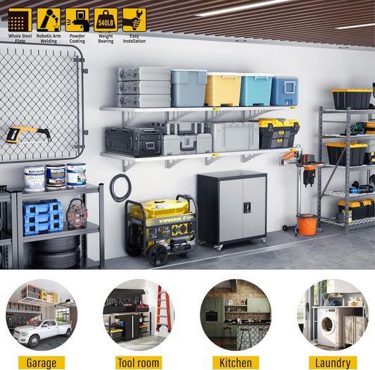Ultrawall Wall Mounted Storage Shelf for Garage, 4 Pack Metal Shelf Rack, Heavy-Duty Wall Organizer Shelves Suitable for Shop, Shed, Garage 23.5inch x 12inch(White)