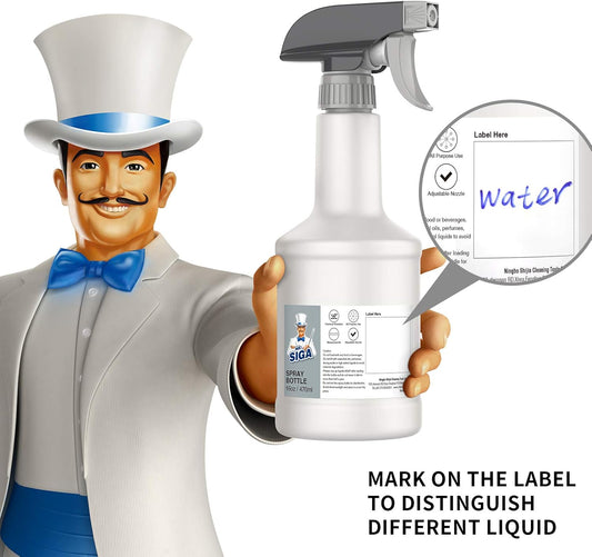 MR.SIGA 16 oz Empty Plastic Spray Bottles for Cleaning Solutions, Heavy Duty Household Reusable Spray Bottles with Measurements and Adjustable Leak Proof Nozzle, 3 Pack