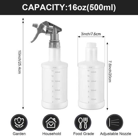 Eccliy 12 Pcs 16 Oz Plastic Spray Bottle, Adjustable Empty Reusable Sprayer for Cleaning, Planting, Water, Bathroom and Kitchen, BBQ, Commercial and Residential(Pure Grey Clear,Measurement)